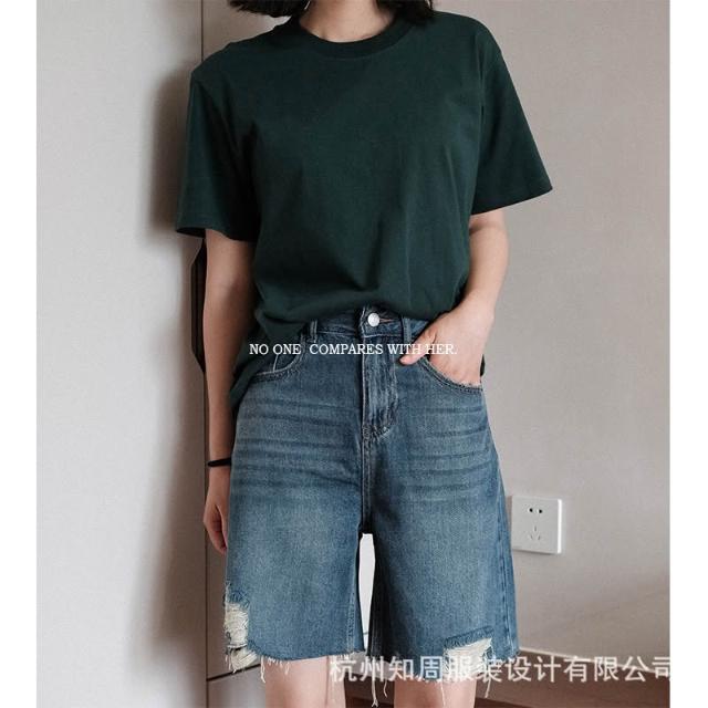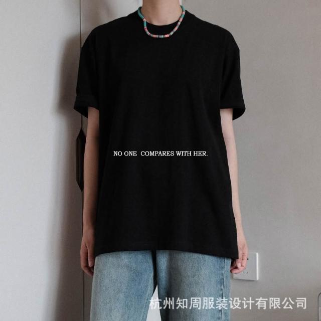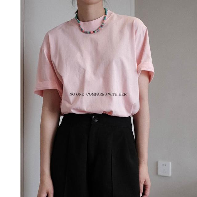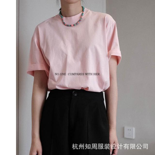 漫語 與她原創設計 經典夏季短袖街頭圓領中性寬松純棉粉色女士t恤上衣