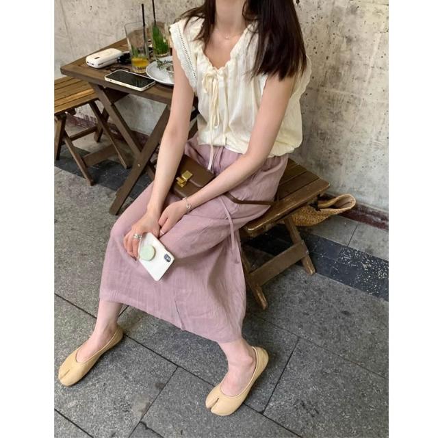 漫語 2025日系松軟麻料粉色半身裙女夏季新款休閑松緊中長款裙子可代發