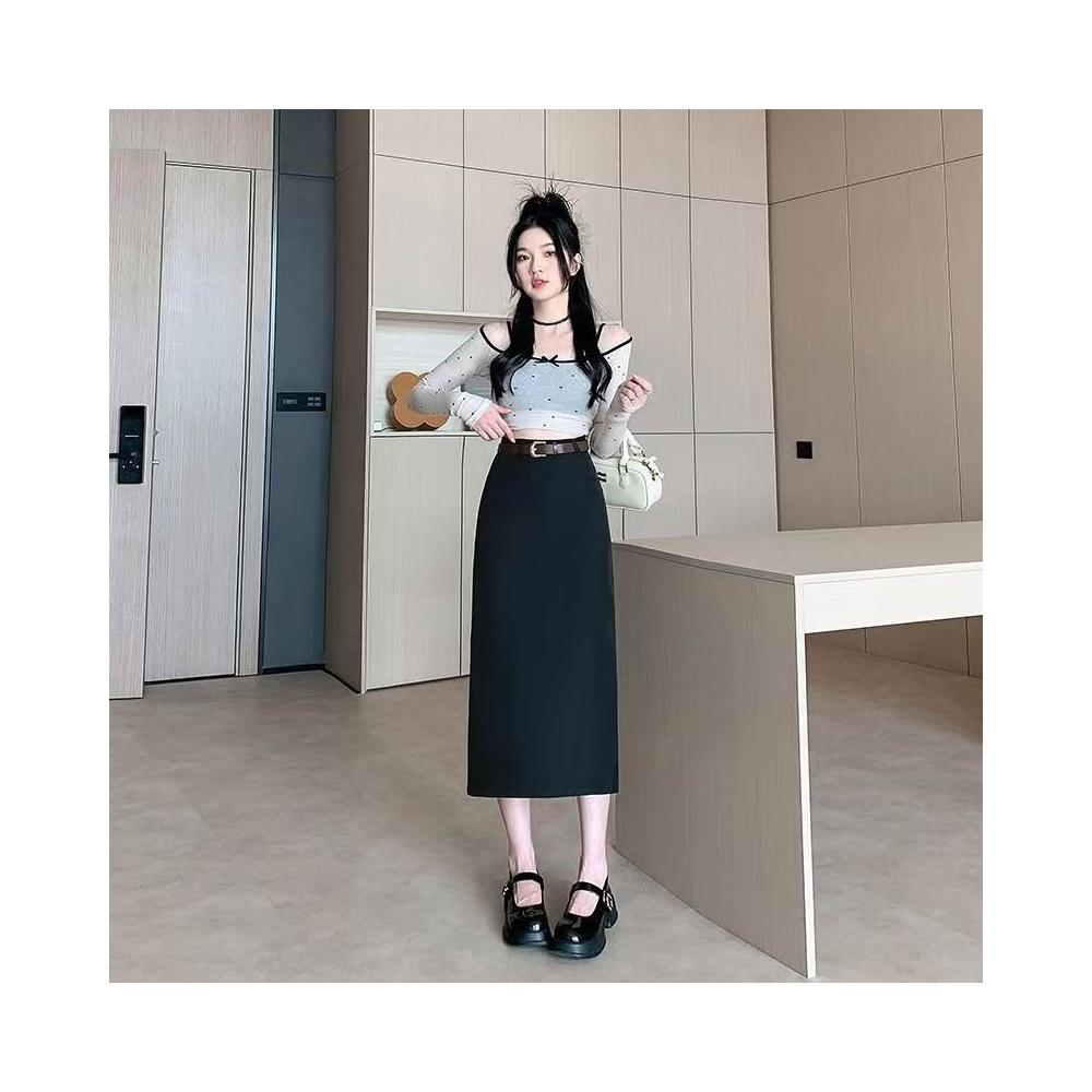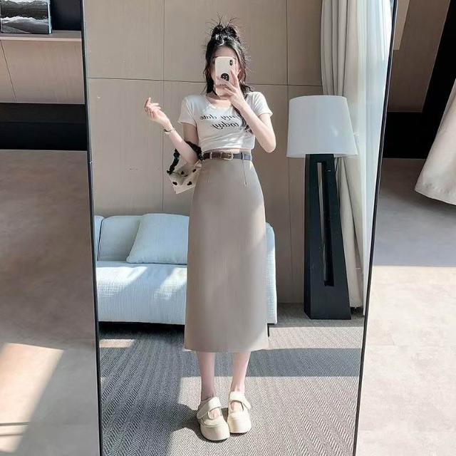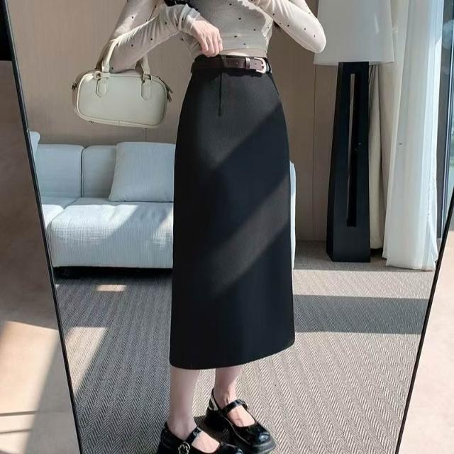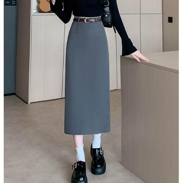 漫語 廠家直銷2026新款直筒半身裙女春夏網紅純色高腰開叉顯瘦一步裙子
