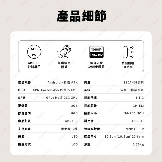 真實1080p家庭劇院 百吋便攜智慧投影機 (支援4K解碼/3W立體聲/靈動雲台/戶外/交換禮物)