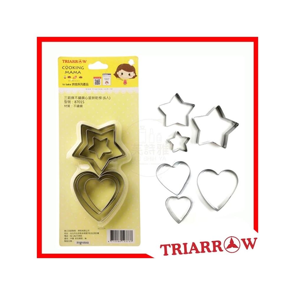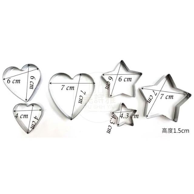 芙詩雅三箭牌 不鏽鋼心星造型餅乾模(6入) 餅乾 造型餅乾模 餅乾模具 烘焙工具 餅乾壓模 模具 造型模具 壓模
