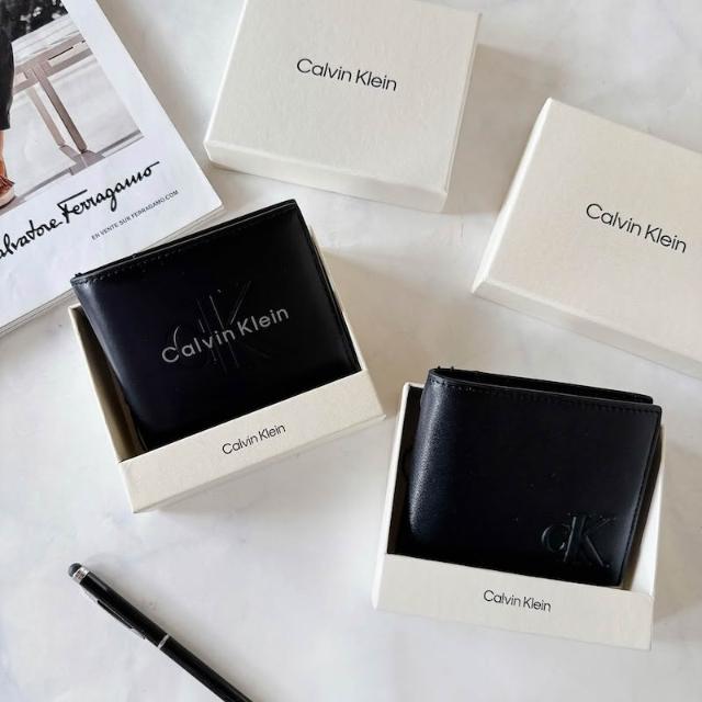 CALVIN KLEINCK 皮夾 真皮 零錢袋 男夾 防刮皮革 短夾 男生皮夾 原廠禮盒