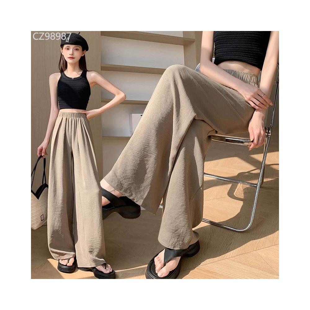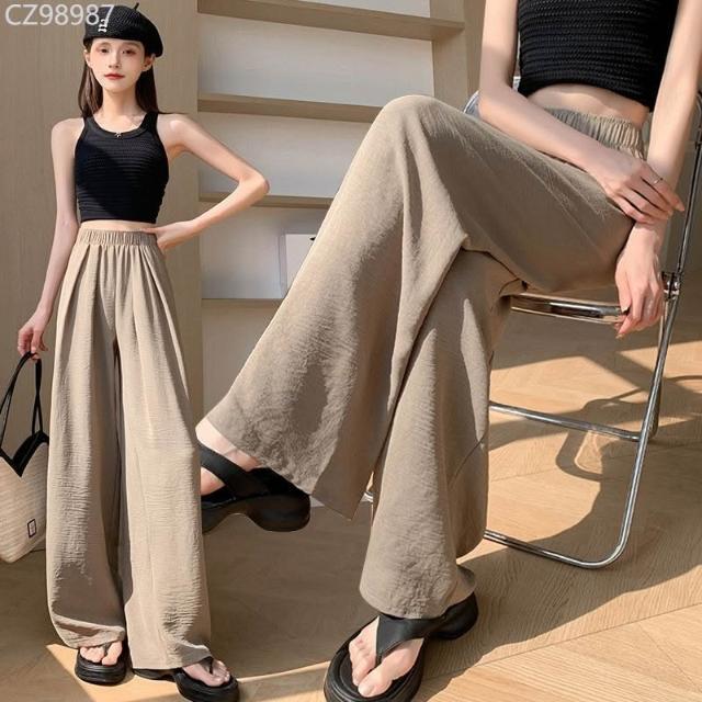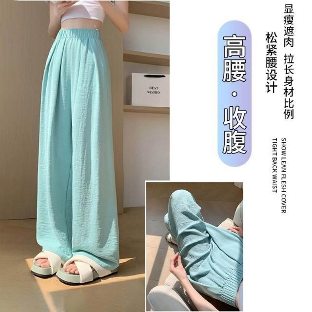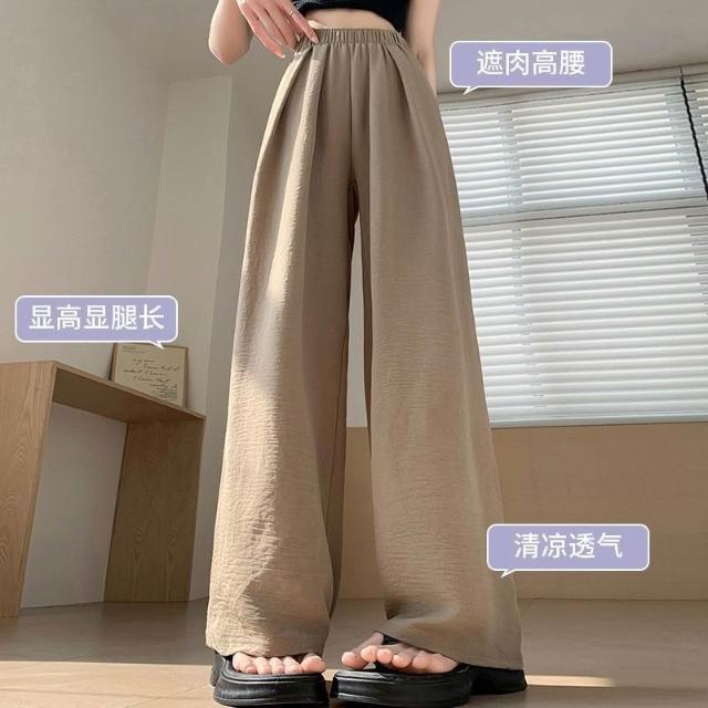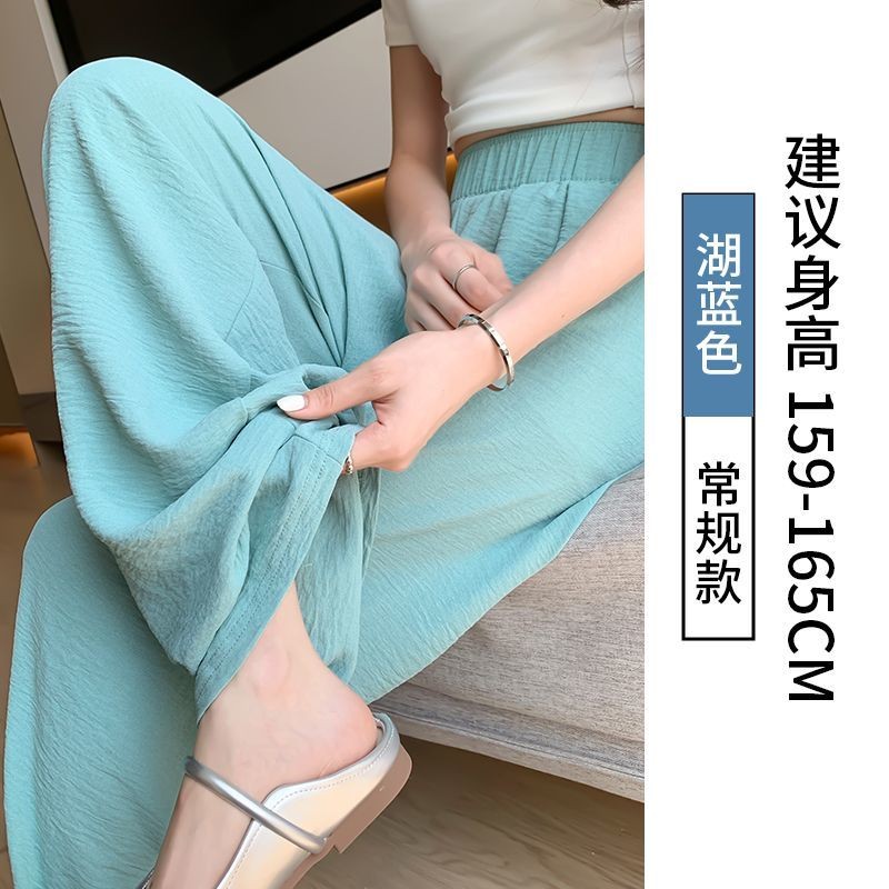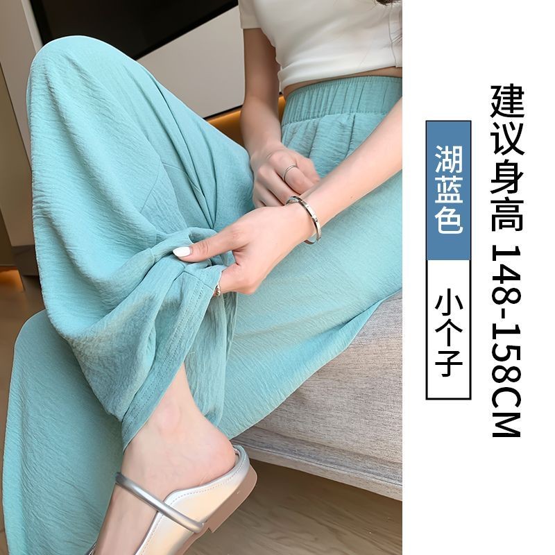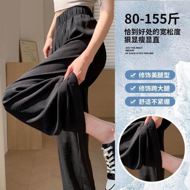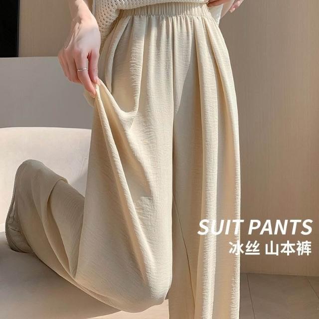 冰絲闊腿褲女夏季薄款涼涼山本褲高腰顯瘦直筒休閒褲垂感防曬褲子