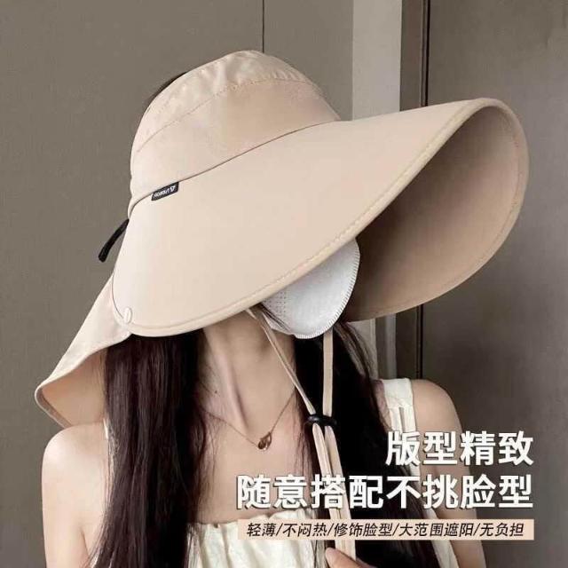 遮陽帽女防曬夏季新款大檐帽簡約空頂漁夫帽防紫外線戶外騎車帽子