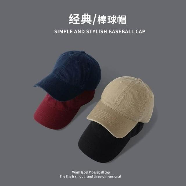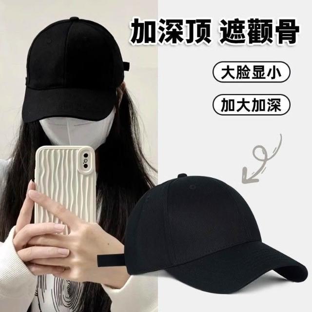 大頭帽子防曬男士無印帽簷加大顯臉加深純色棒球帽黑色硬頂鴨舌帽