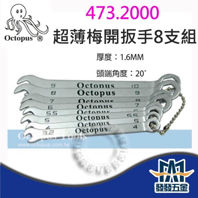 Octopus 章魚牌 473.2000 超薄梅開扳手 8支組 扳手組 3.2-10mm 公制 含稅