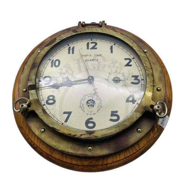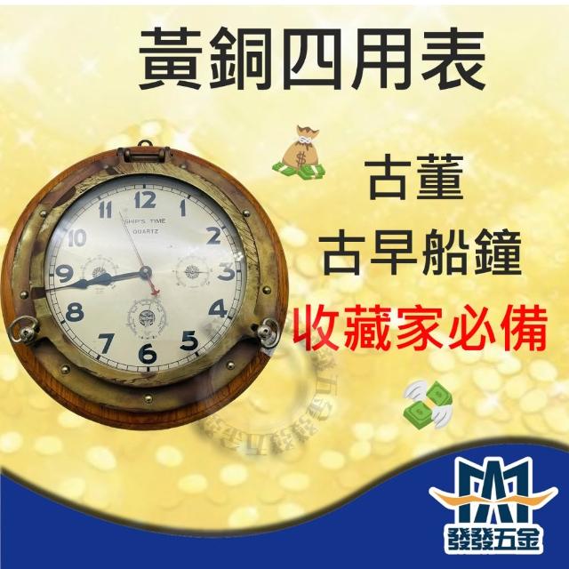 黃銅四用表 復古 古董 船鐘 收藏品 one piece 致富密碼 擺飾 寶藏 溫度計 濕度計 氣壓計 含稅