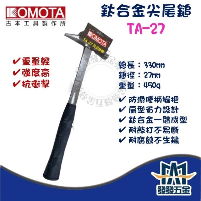 KOMOTA 鈦合金尖尾槌 TA-27 重量輕 強度高 扁型省力設計 一體成型 鈦合金 尖尾鎚 榔頭 鐵鎚