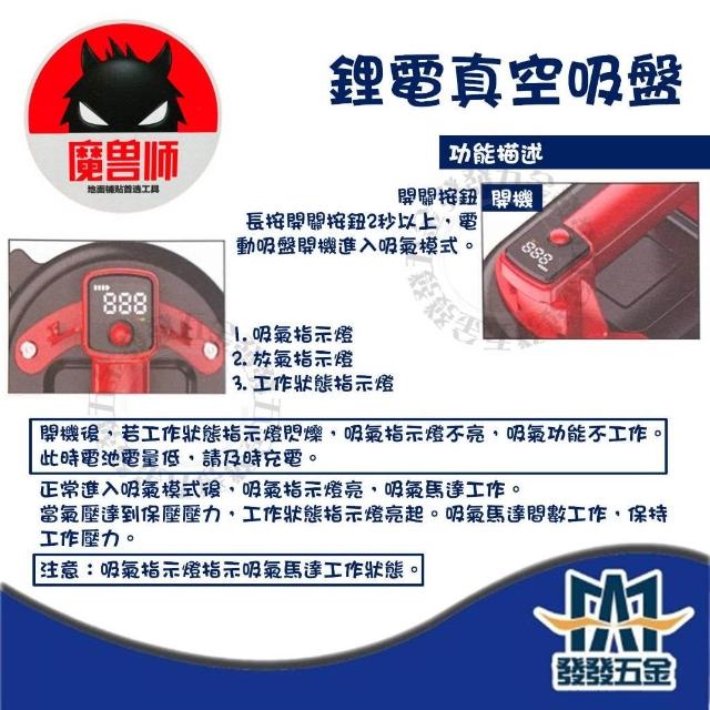 魔獸師 鋰電真空吸盤 10寸 200KG 真空吸盤 超強吸力 搬運神器 地磚瓷磚大岩板玻璃搬運 一鍵洩氣