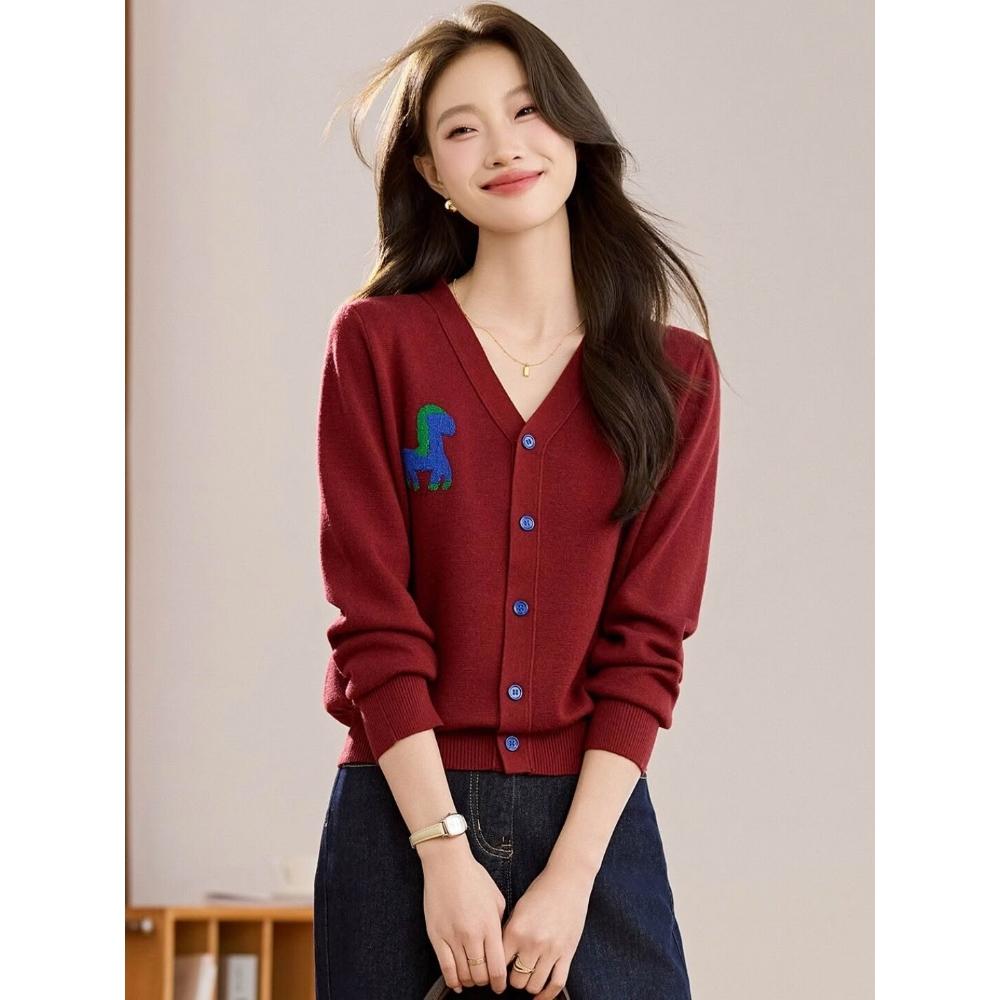 實拍 領針織開衫女新款秋季刺繡紐扣毛衣外套春秋小個子長袖上衣