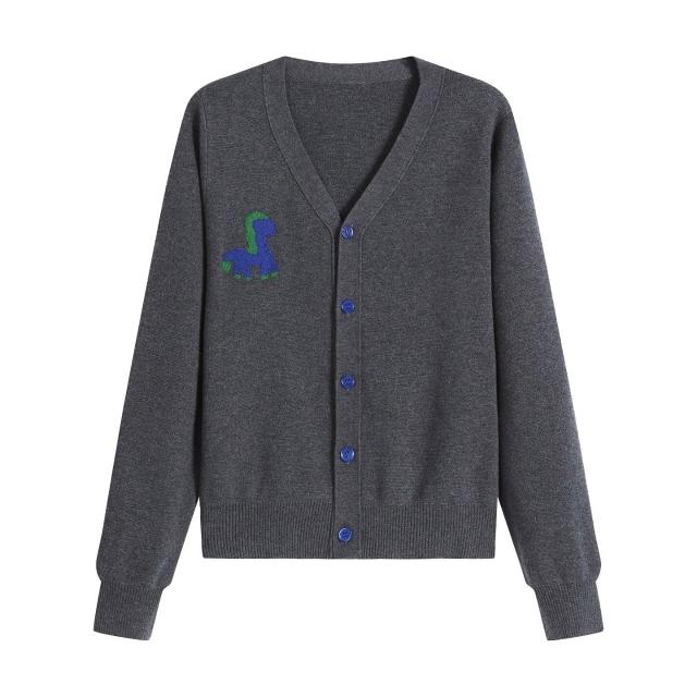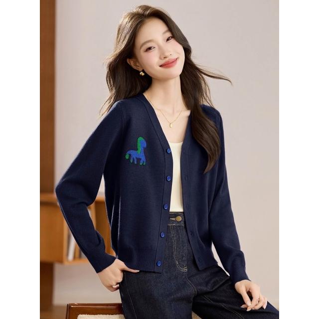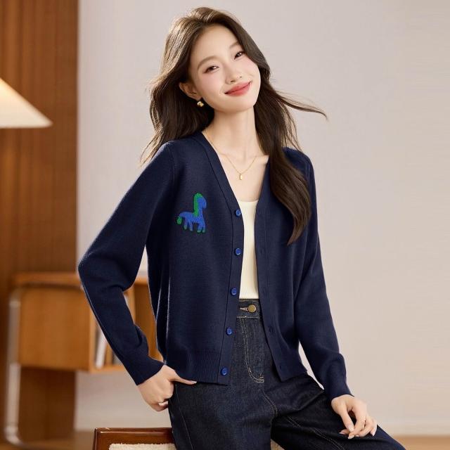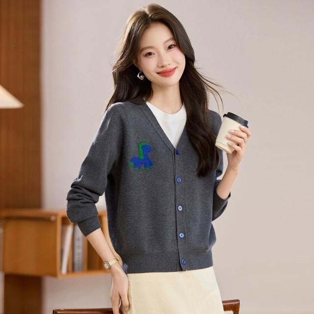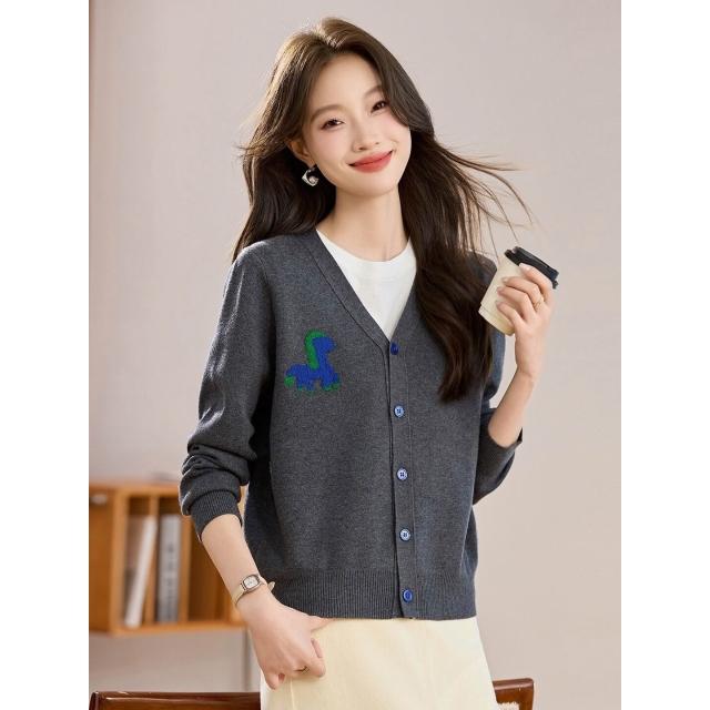 實拍 領針織開衫女新款秋季刺繡紐扣毛衣外套春秋小個子長袖上衣