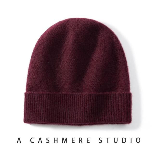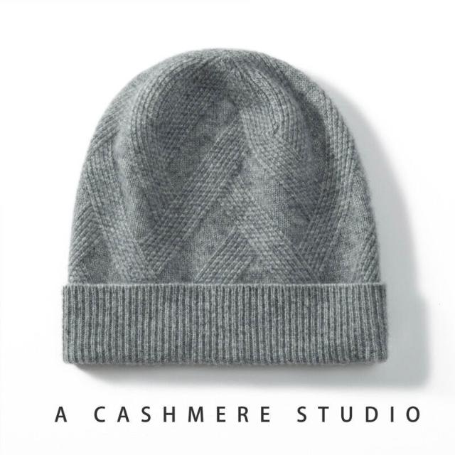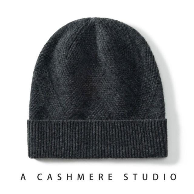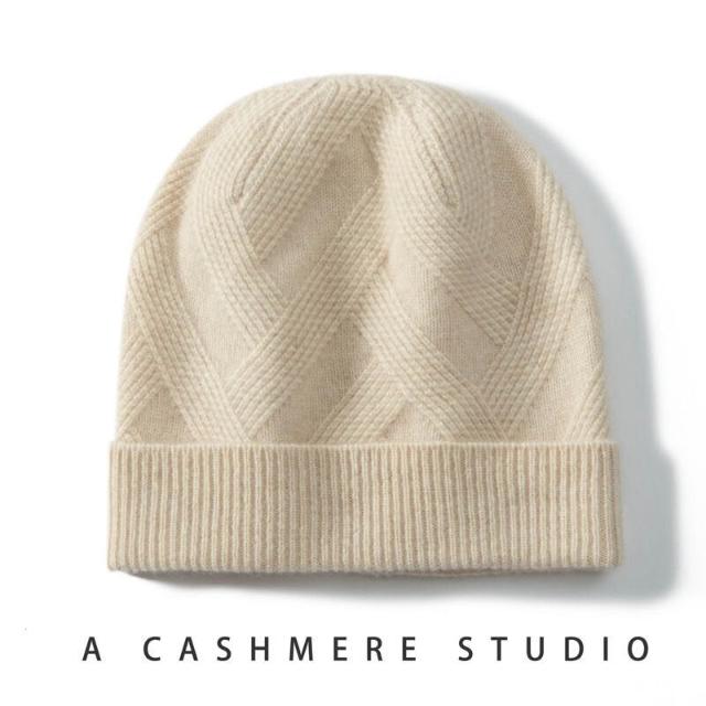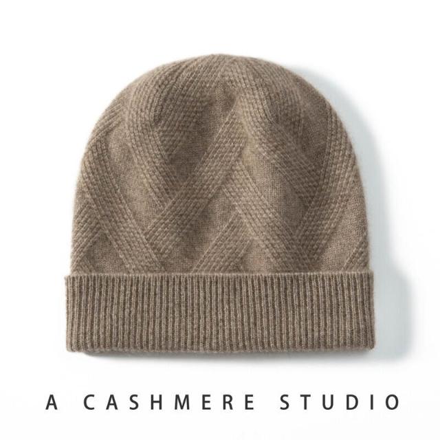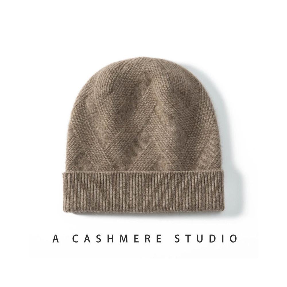 Seven七- 100%純羊絨帽子女加厚針織絞花休閑情侶護耳保暖秋冬新款包頭帽男