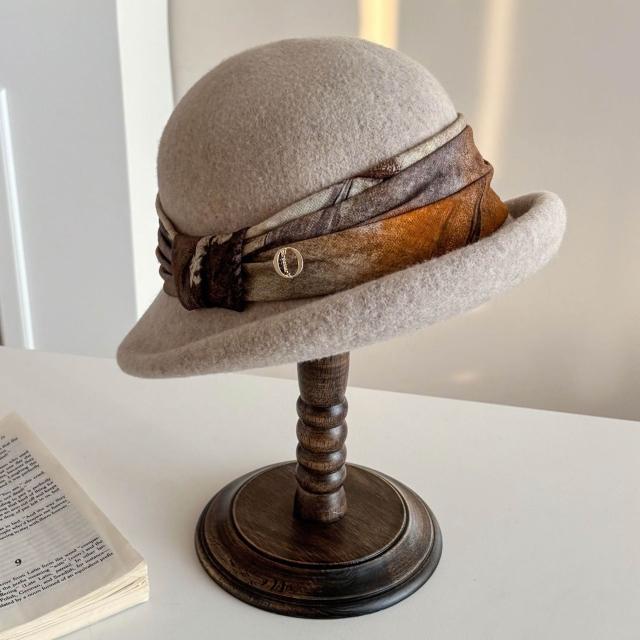 Seven七- 法式復古卷邊羊毛呢高級感冬天漁夫帽子女士款優雅禮帽秋冬季盆帽
