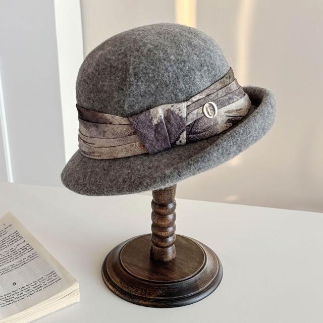 Seven七- 法式復古卷邊羊毛呢高級感冬天漁夫帽子女士款優雅禮帽秋冬季盆帽