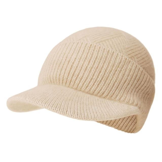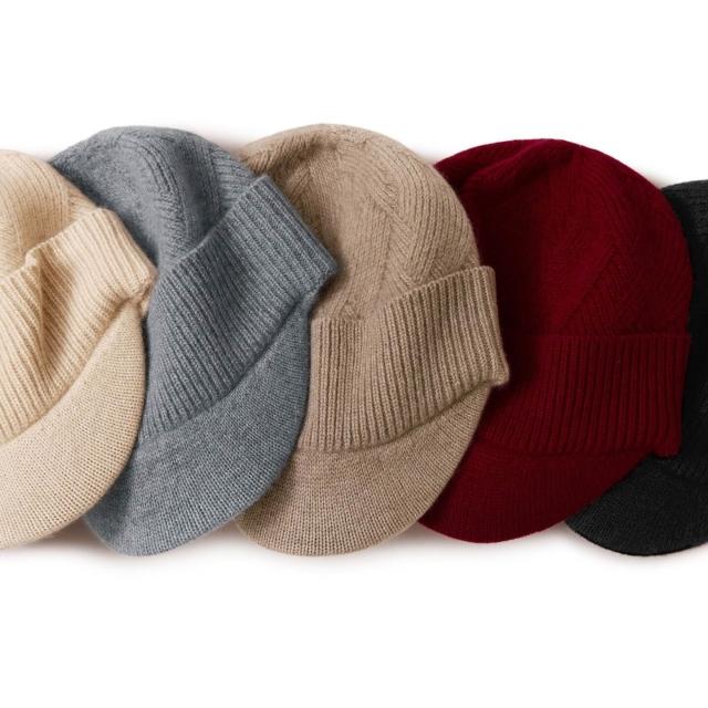 Seven七- 秋冬100%純羊絨帽子女士護耳老年鴨舌帽加厚保暖情侶毛線針織帽