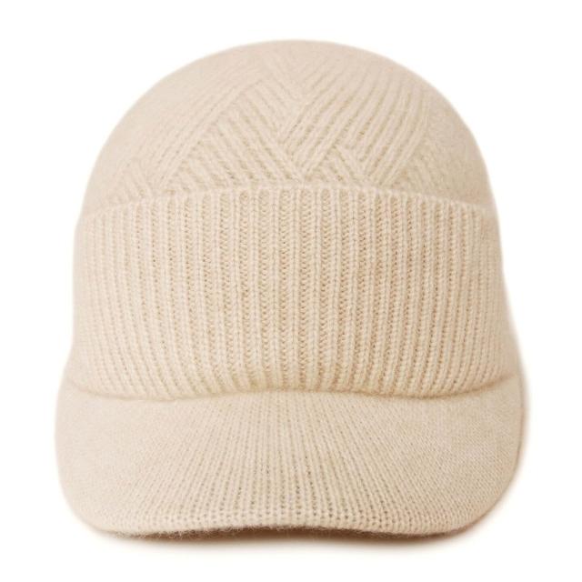 Seven七- 秋冬100%純羊絨帽子女士護耳老年鴨舌帽加厚保暖情侶毛線針織帽