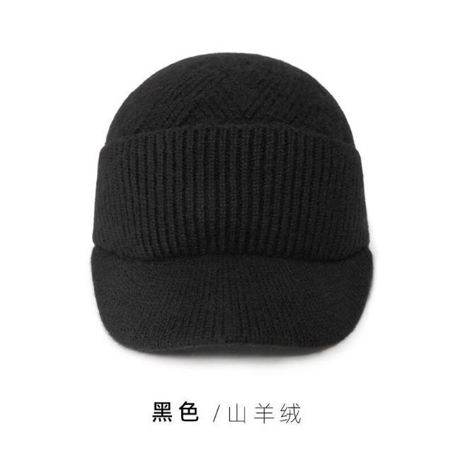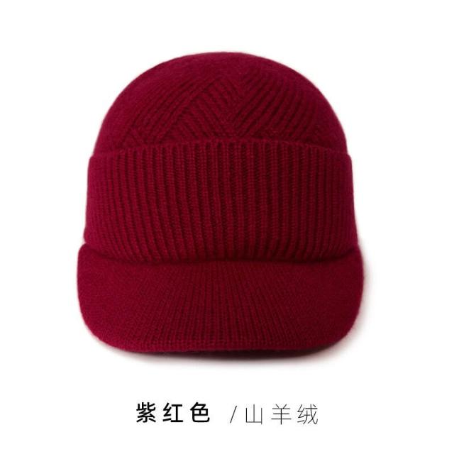 Seven七- 秋冬100%純羊絨帽子女士護耳老年鴨舌帽加厚保暖情侶毛線針織帽