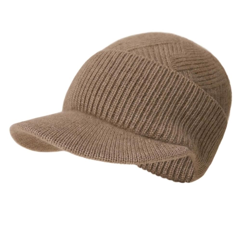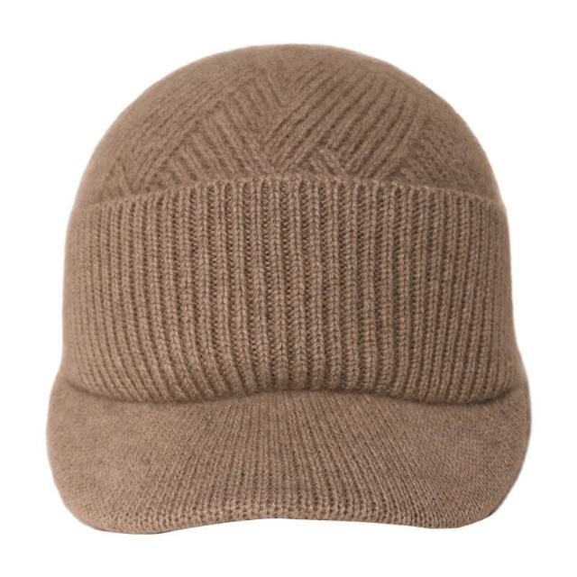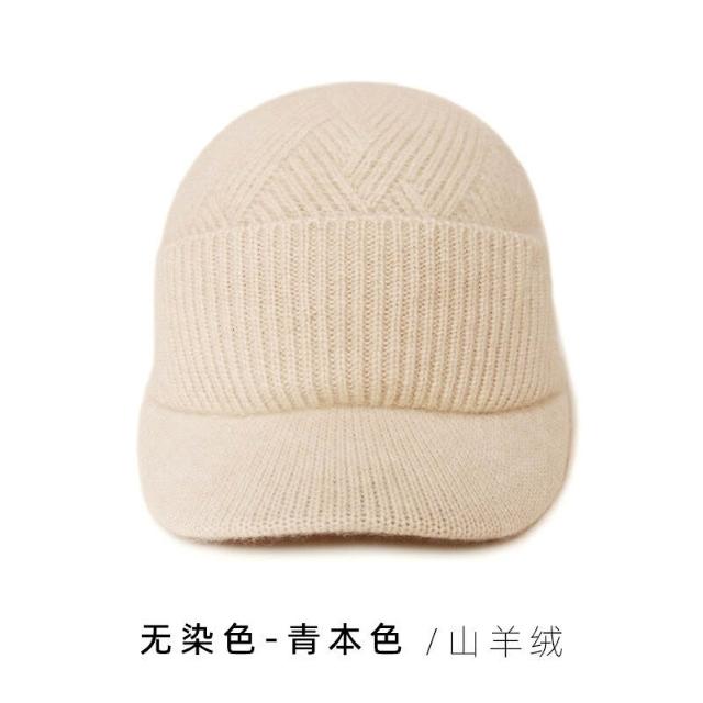 Seven七- 秋冬100%純羊絨帽子女士護耳老年鴨舌帽加厚保暖情侶毛線針織帽