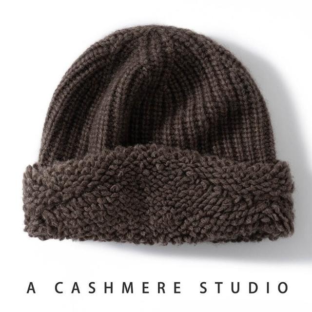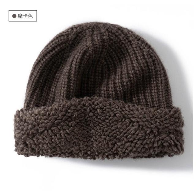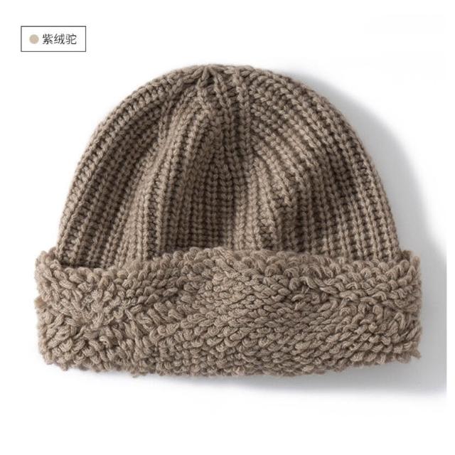 Seven七- 外貿爆款出口外單羊絨帽子女款秋冬季針織毛巾工藝顯臉小寬松護耳