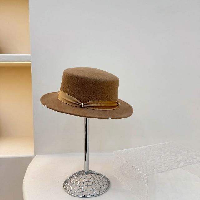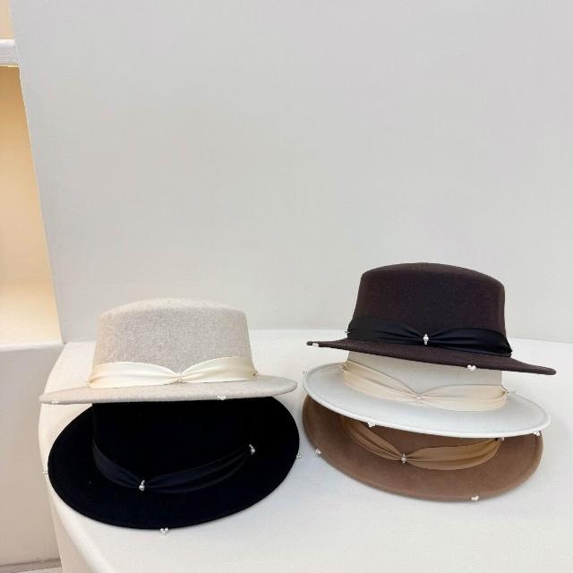 Seven七- 赫本風珍珠羊毛禮帽女秋冬時尚百搭平頂帽法式復古保暖名媛爵士帽