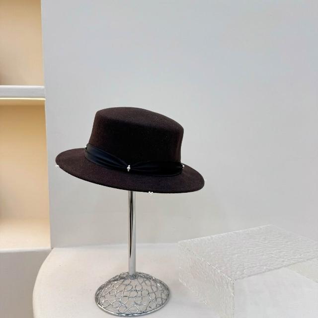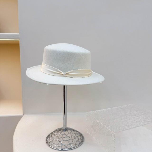 Seven七- 赫本風珍珠羊毛禮帽女秋冬時尚百搭平頂帽法式復古保暖名媛爵士帽