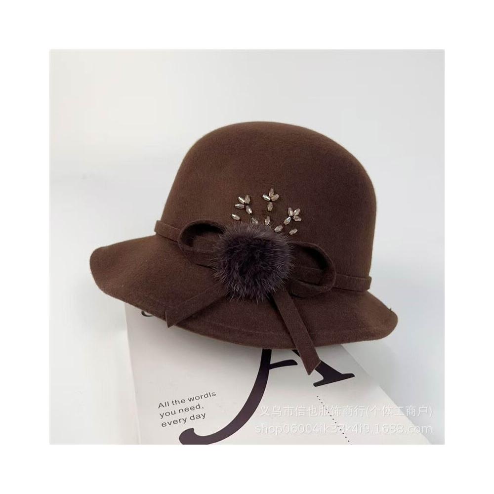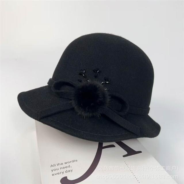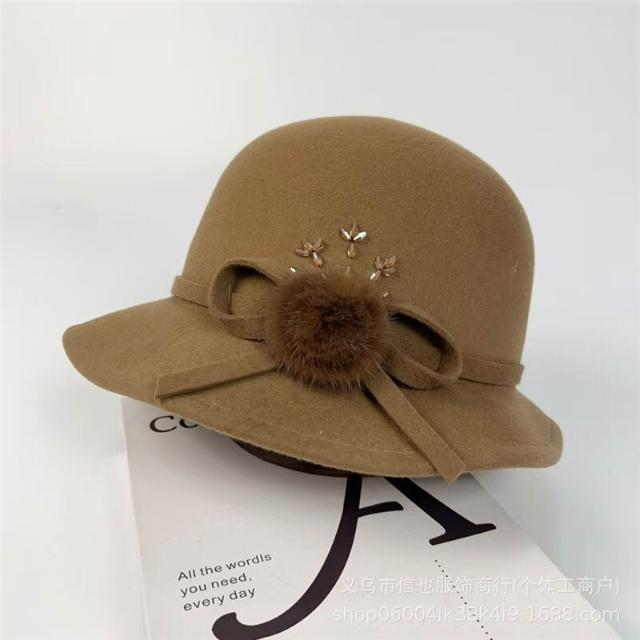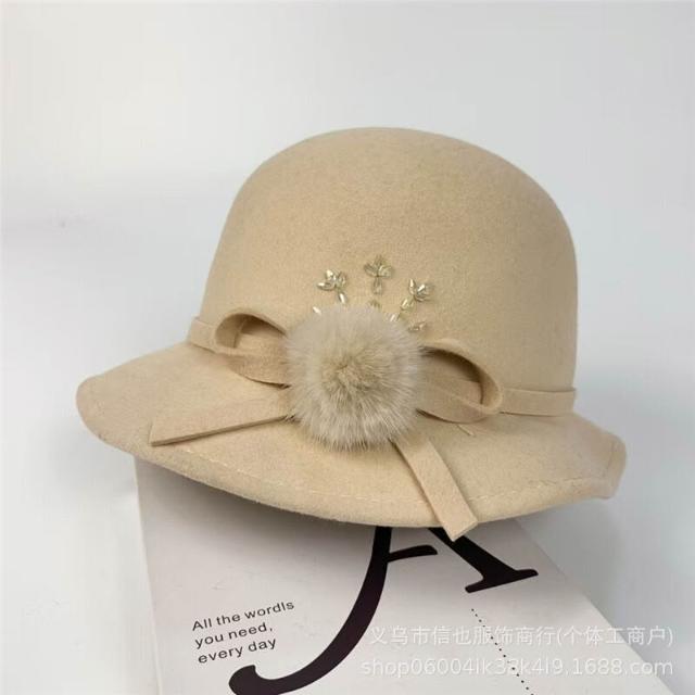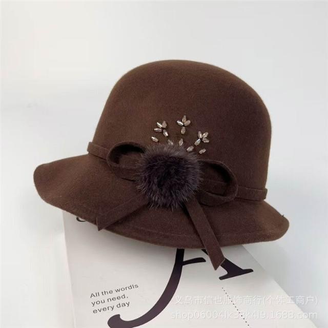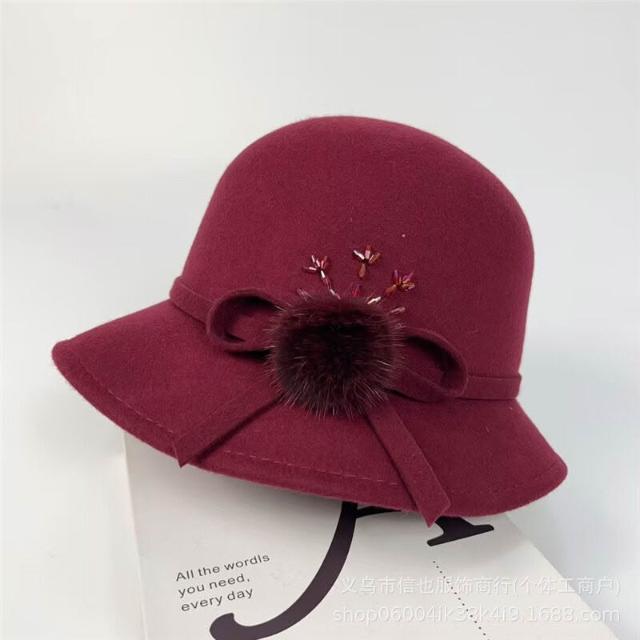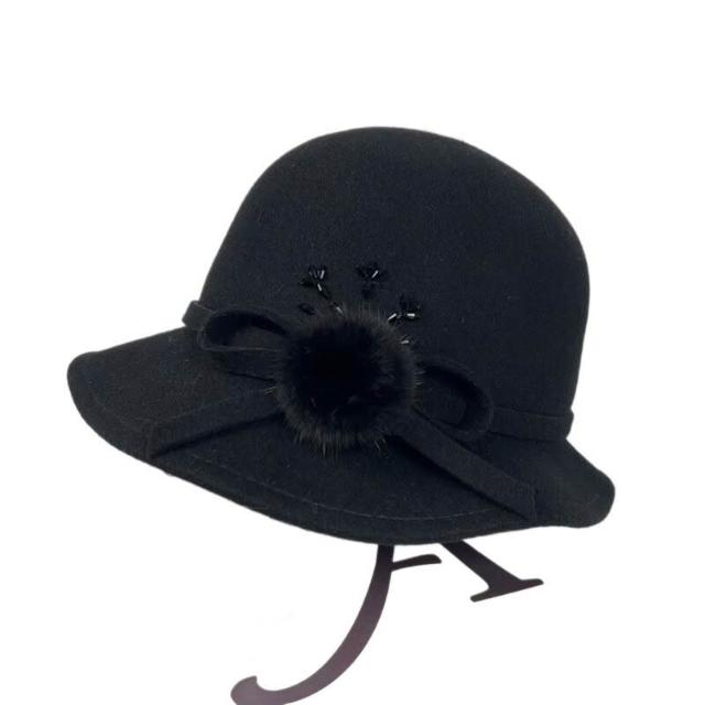 Seven七- 法式復古毛球蝴蝶結漁夫帽女秋冬波浪帽檐赫本圓頂澳毛保暖盆帽潮