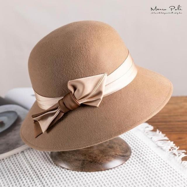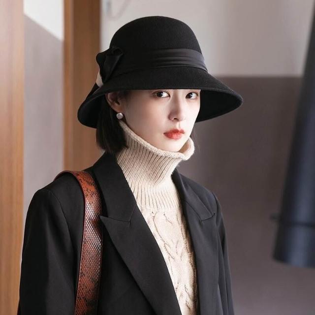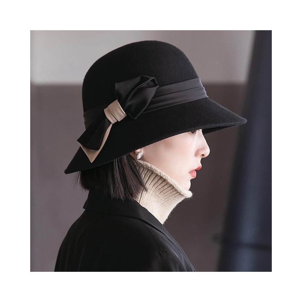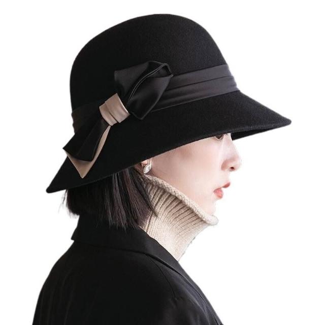 Seven七- 氈帽女秋冬羊毛新款黑色禮帽復古時尚百搭漁夫帽毛呢盆帽帽子女冬