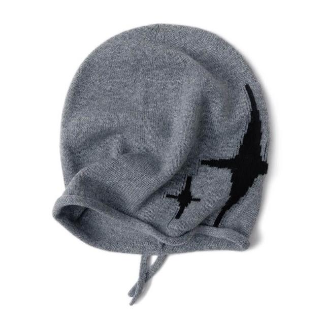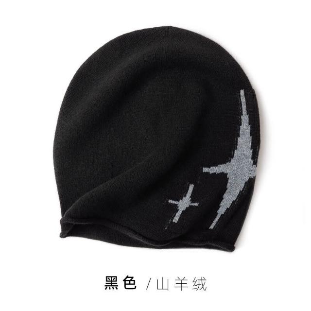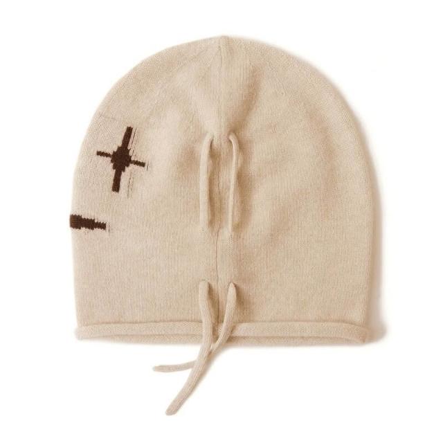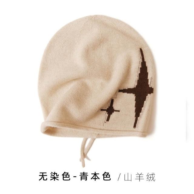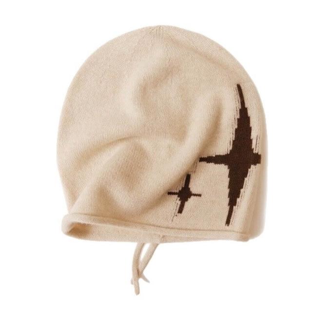 Seven七- 秋冬100%山羊絨帽子女士保暖護耳冷帽大頭圍顯臉小毛線針織堆堆帽