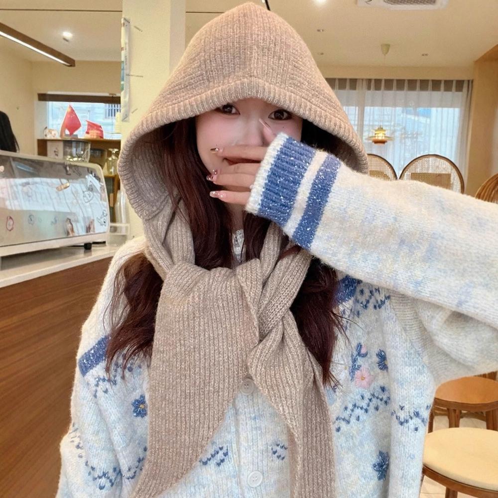 Seven七- 韓系帽子圍巾一體加厚保暖針織帽女冬季巴拉克拉法帽護耳連帽圍脖