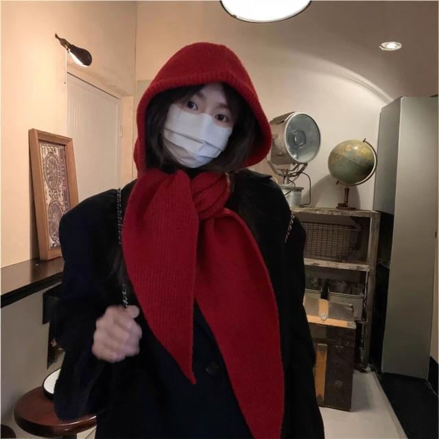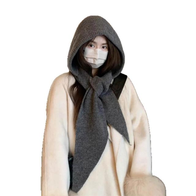 Seven七- 韓系帽子圍巾一體加厚保暖針織帽女冬季巴拉克拉法帽護耳連帽圍脖