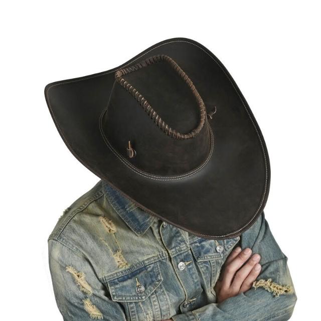 Seven七- 流行 同款 爆款 歐美 瘋馬皮 西部 牛仔帽 頭層牛皮帽 男款騎馬帽子