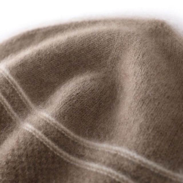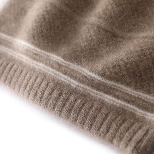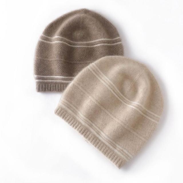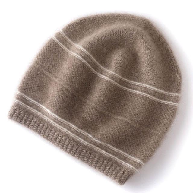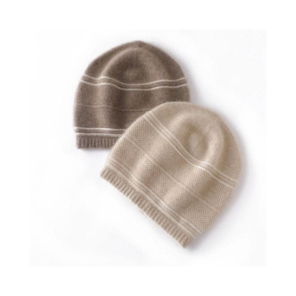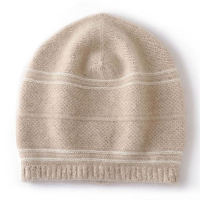 Seven七- 新款高檔100%純山羊絨保暖毛線帽女秋冬提花親膚針織拼色羊絨帽子