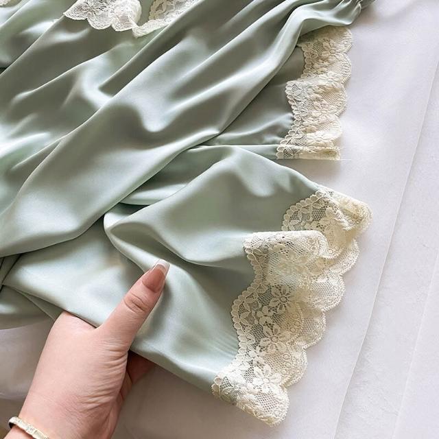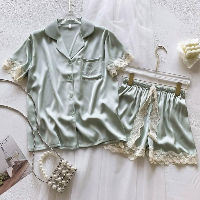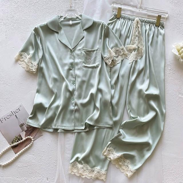 Seven七 6A級100桑蠶絲真絲睡衣女短袖短褲長褲套裝可外穿絲綢家居服套裝