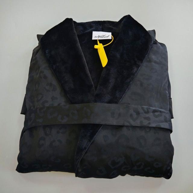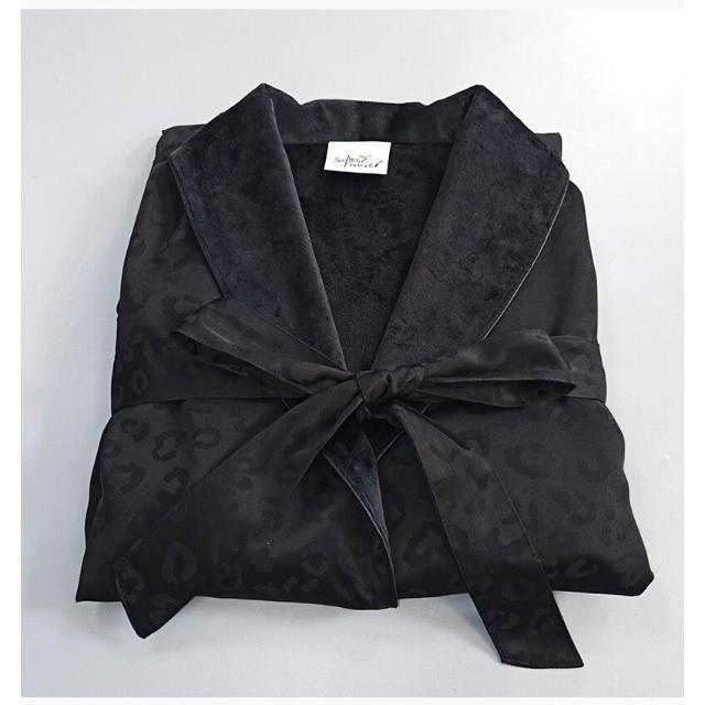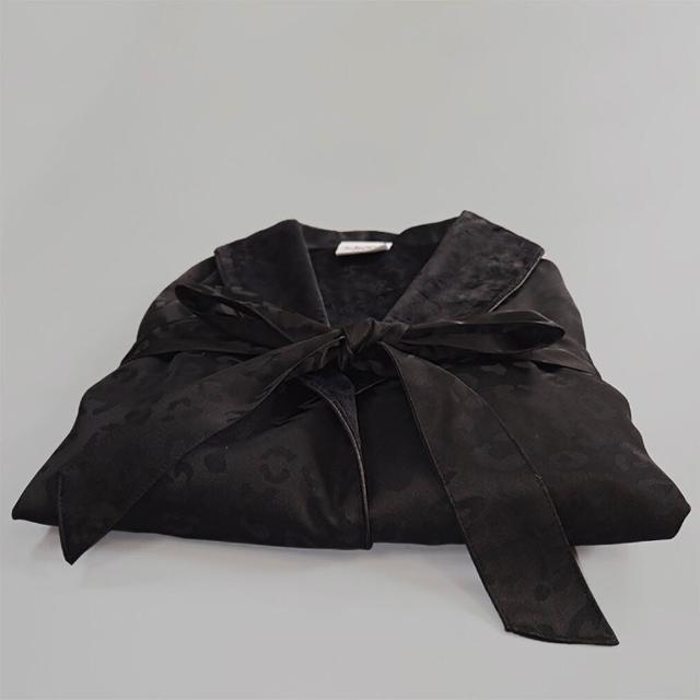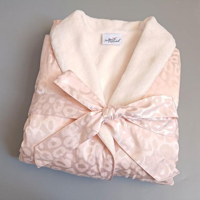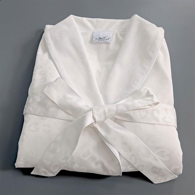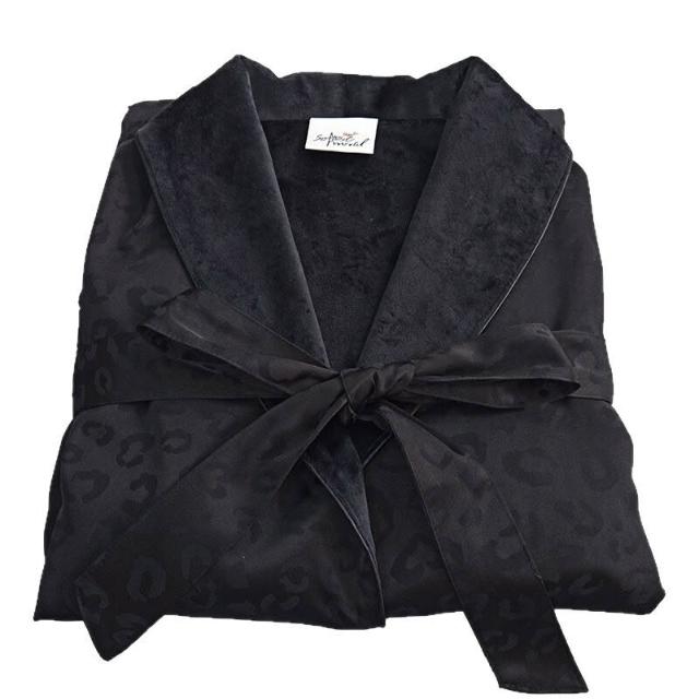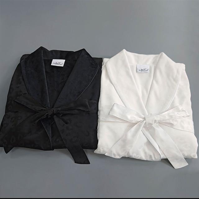 Seven七 奢華絲綢豹紋提花浴袍春秋薄絨男女雙層睡袍民宿美容居家吸水浴衣
