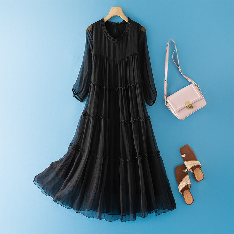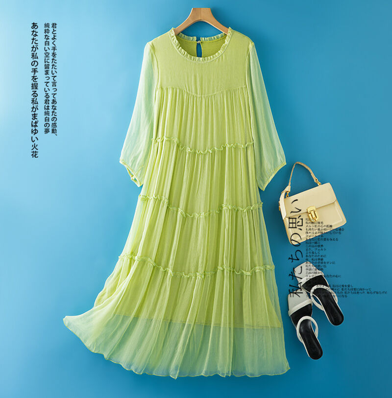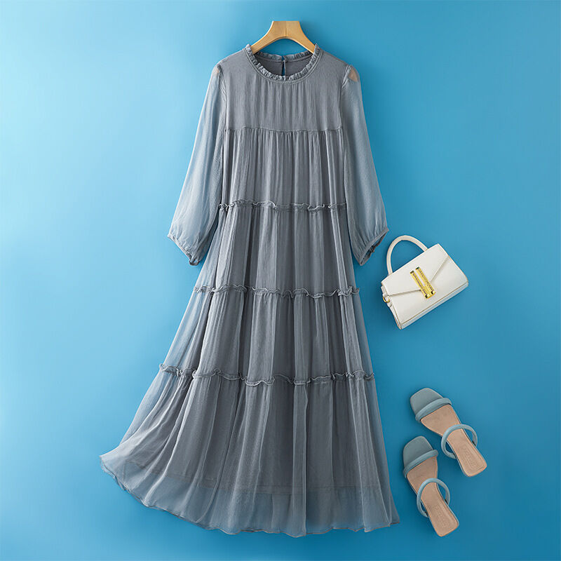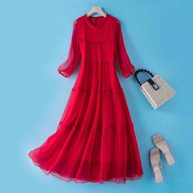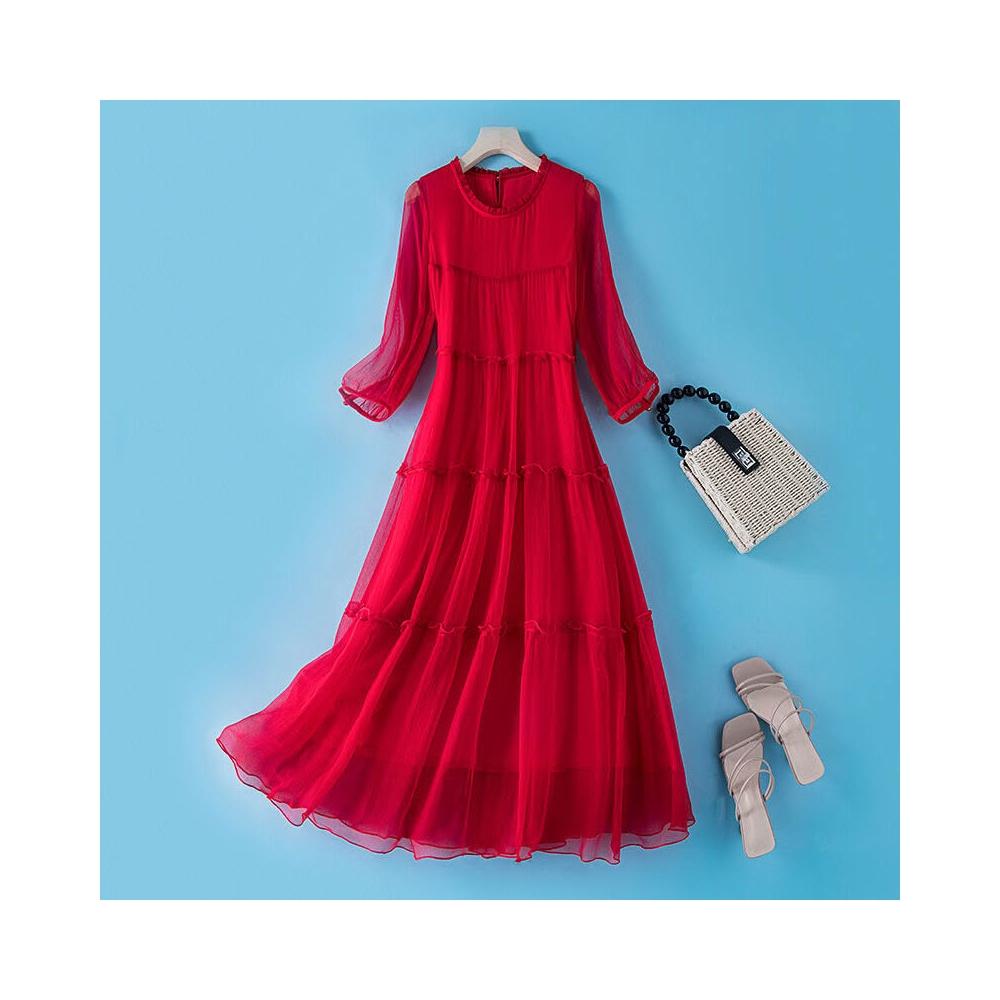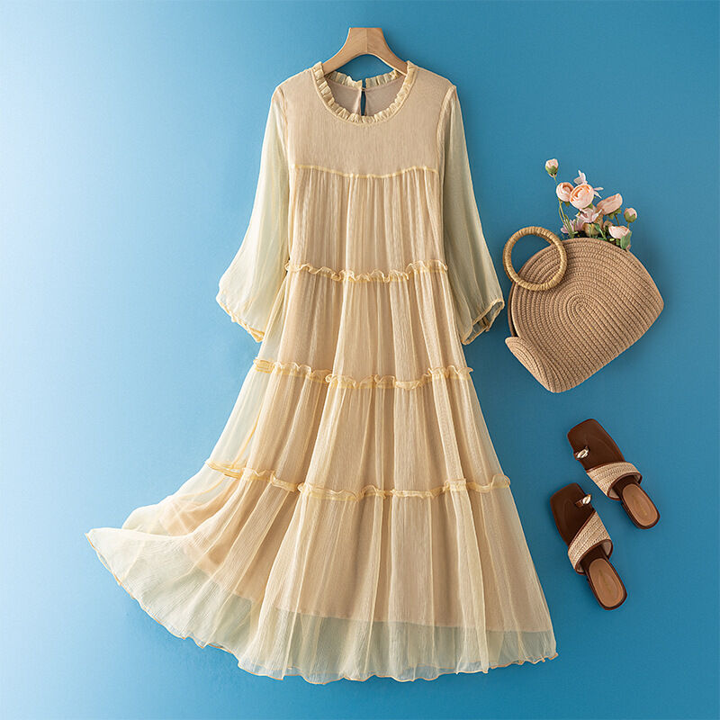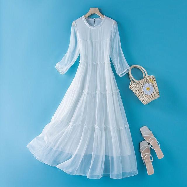 Seven七- 一件代發實體批發女裝真絲連衣裙夏季新款OL氣質寬松波西米亞長裙