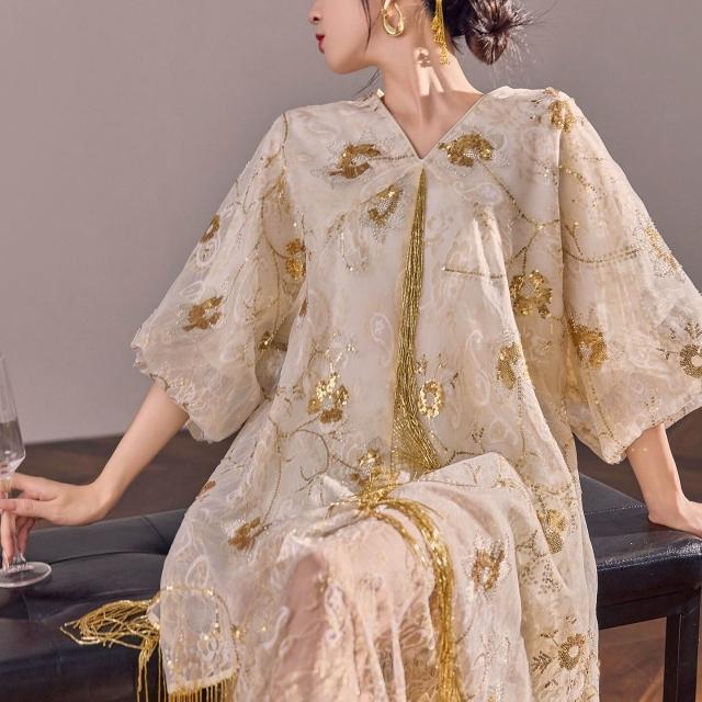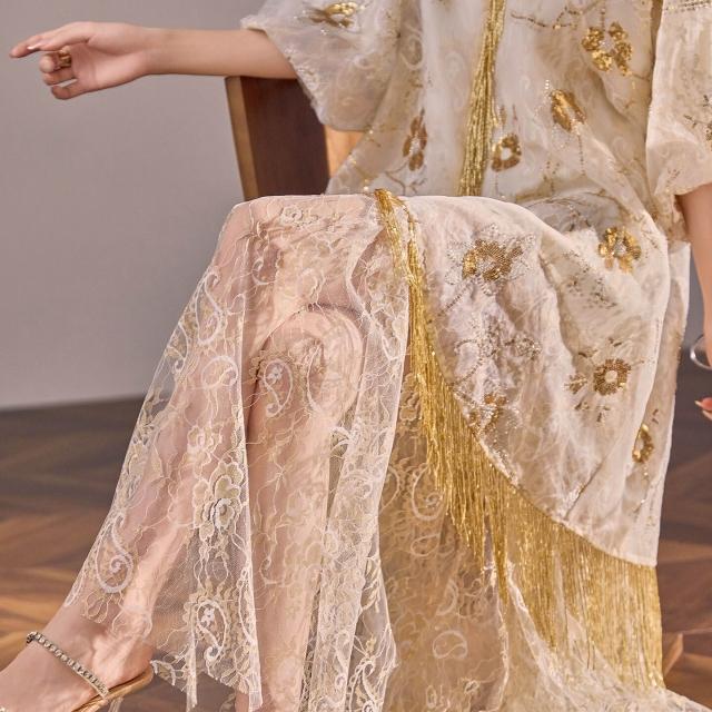 Seven七- 國風新款小個子巨好看的裙子2026夏季新爆款刺繡蕾絲連衣裙 N6003