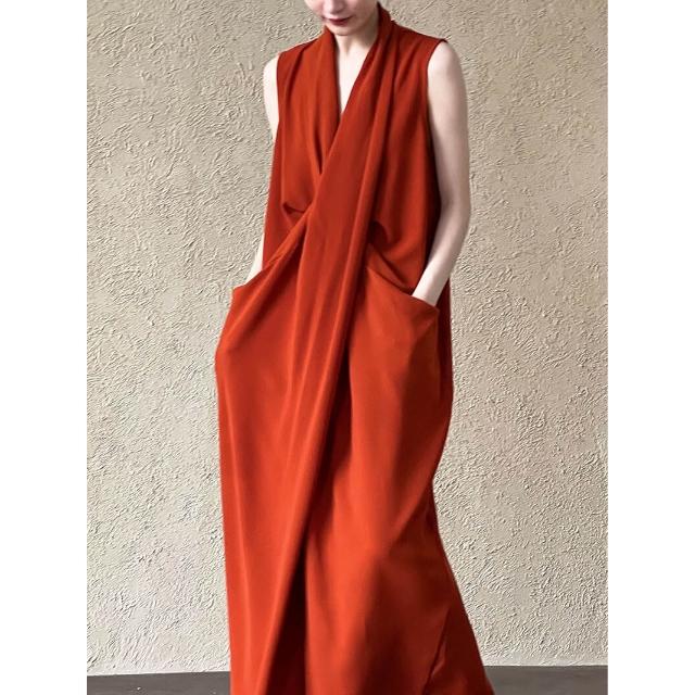 Seven七- 氣質 V領 無袖 扭結 收腰 連衣裙 女 顯瘦 不規則 高級 港風 長裙子