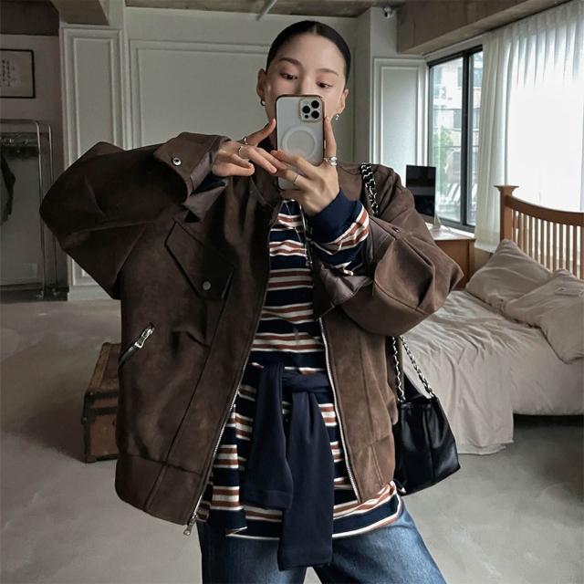 Seven七- 自留 絕美絕美秋季新款美式奧拉德仿鹿皮絨夾克短外套女