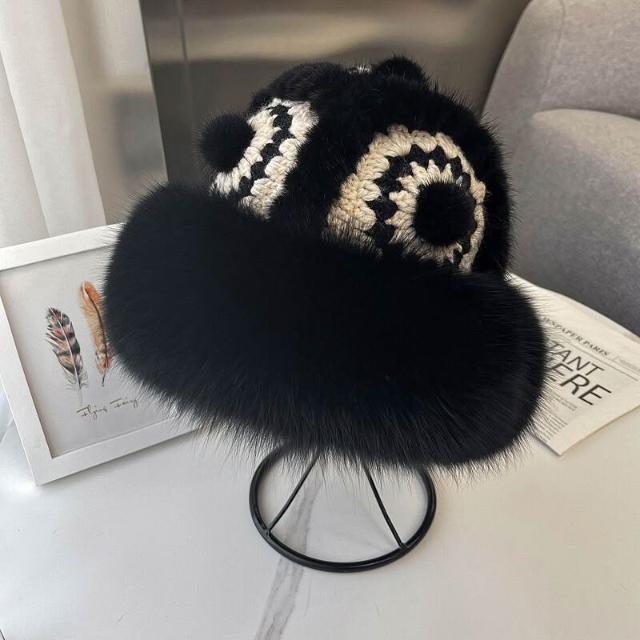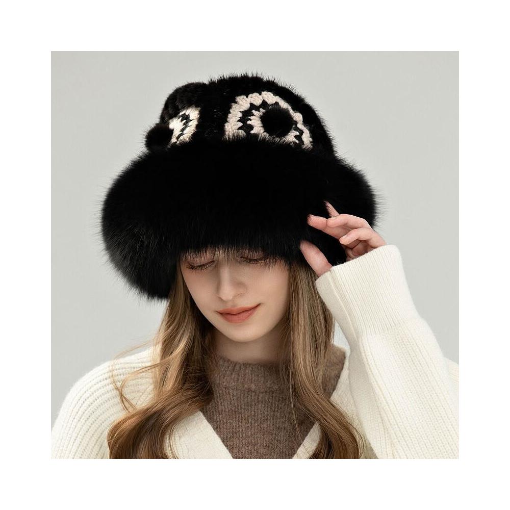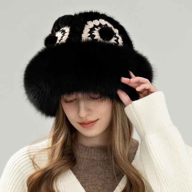 Seven七- 水貂漁夫帽女秋冬季新款保暖狐貍毛皮草帽子氣質顯臉小真毛醒獅帽