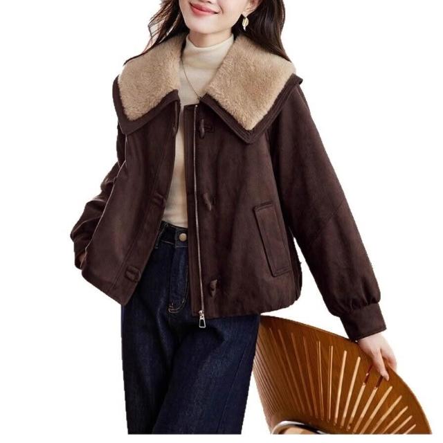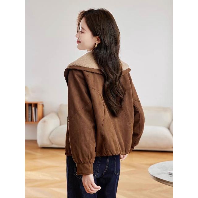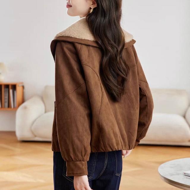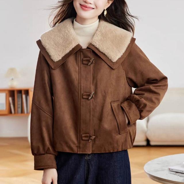 Seven七- 加絨加厚羊羔毛大翻領外套女2026秋冬新款麂皮絨夾克牛角扣上衣女