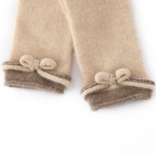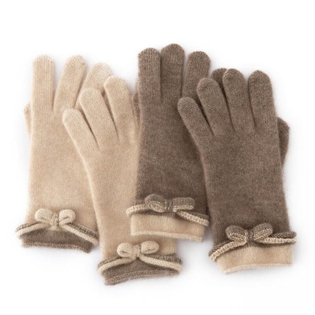 Seven七- 保暖手套女士冬季山羊絨分指蝴蝶節100純山羊絨防寒加厚全指手套