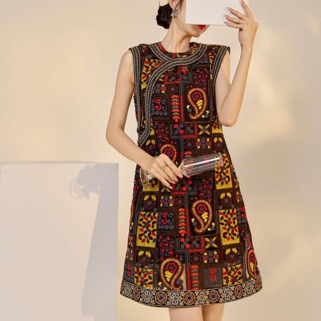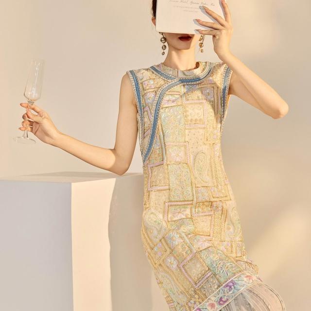 Seven七- .夏季高級刺繡拼接連衣裙女裝2026國風時尚設計感長裙 N5076