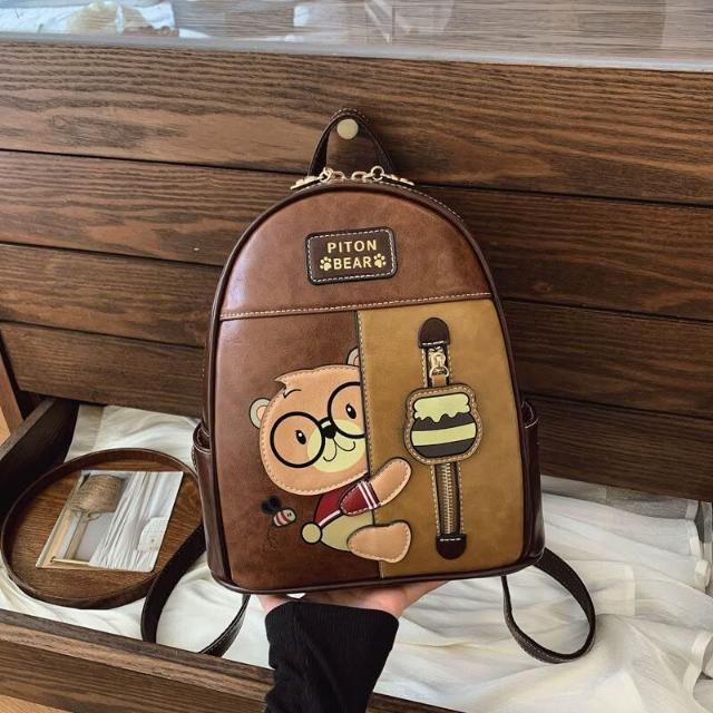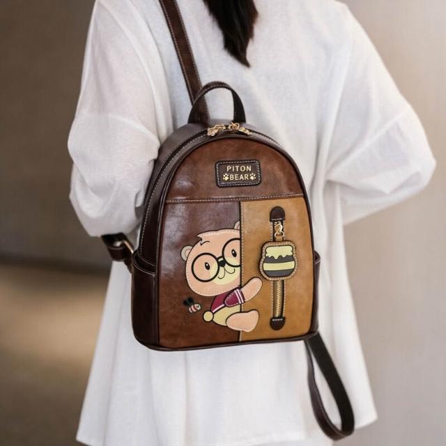 Seven七- 北包包2026新款卡通小熊休閑百搭旅行書包小眾時尚貝殼雙肩背包女