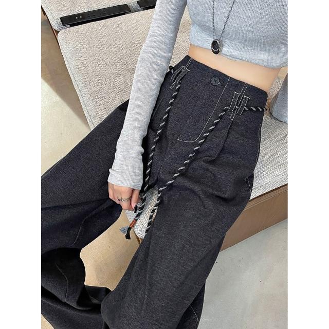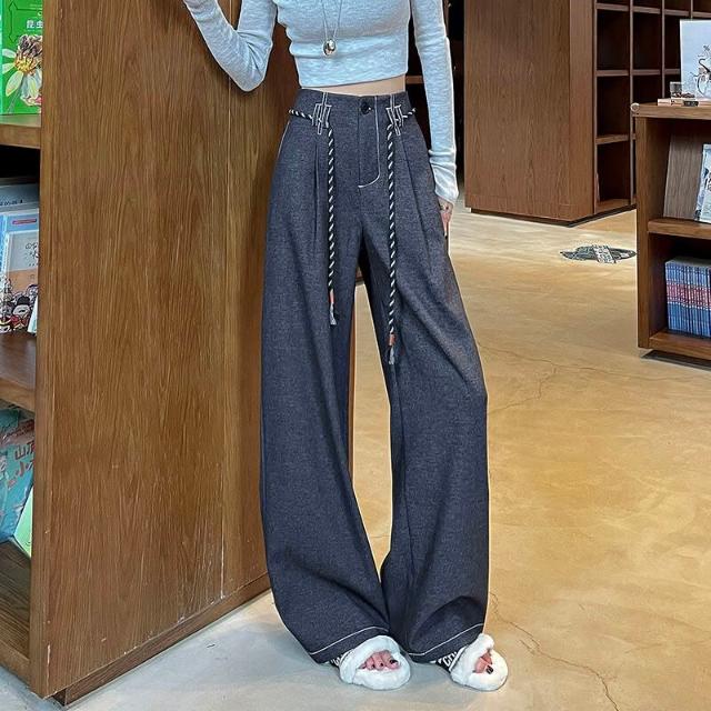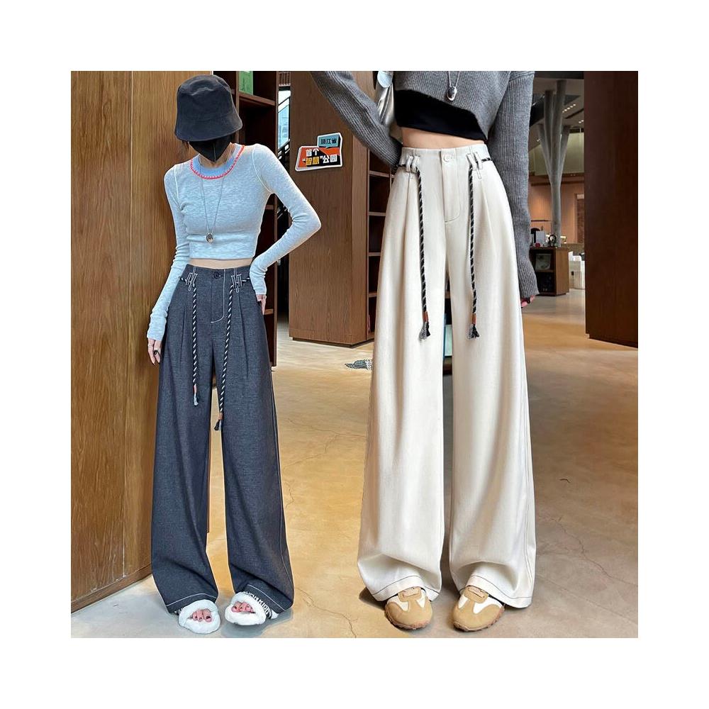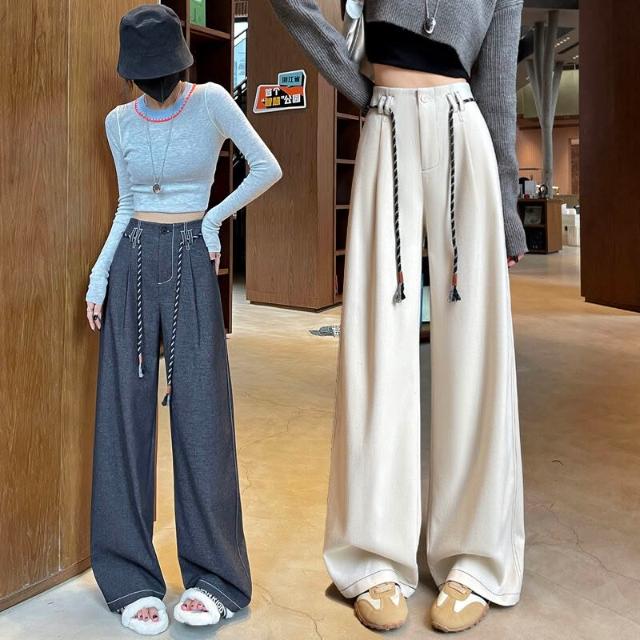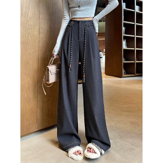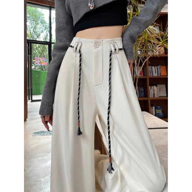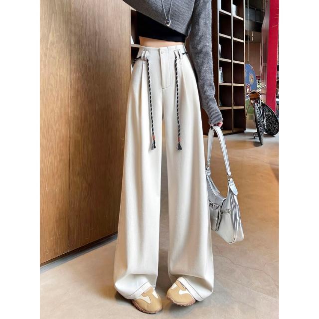 Seven七- 絕美 糯米毛呢闊腿褲女2026秋冬新款窄版直筒小個子軟糯毛呢長褲