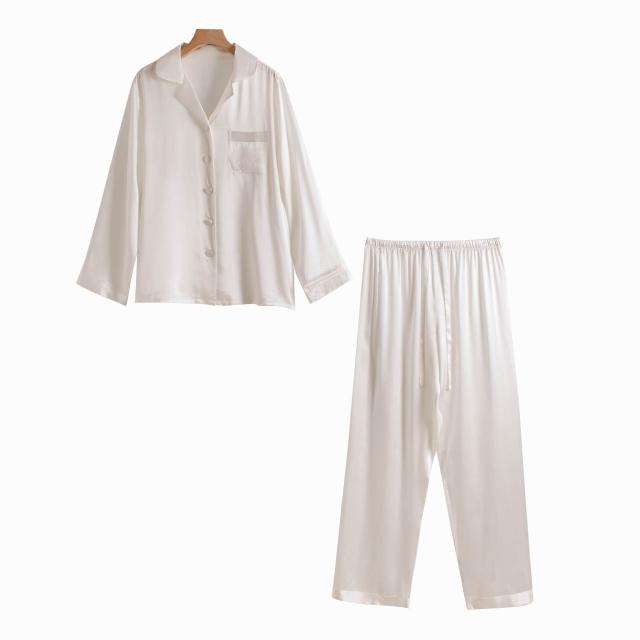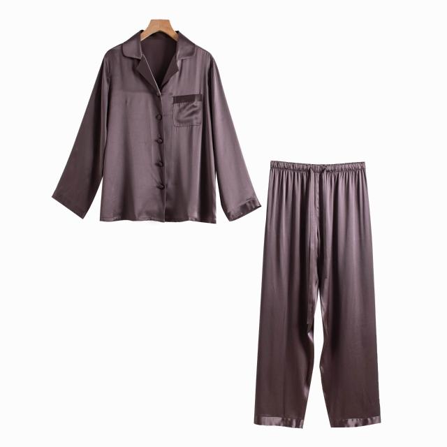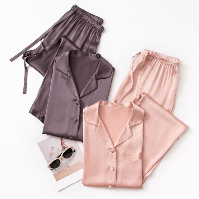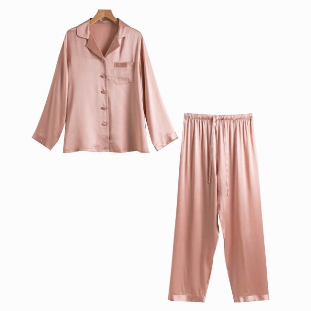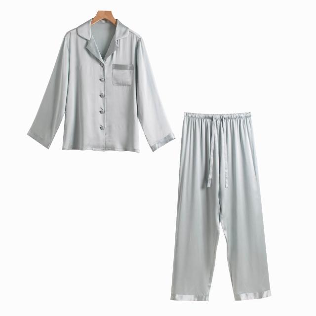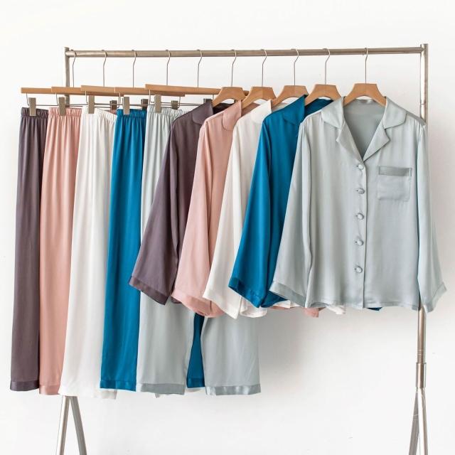 Seven七- 熱賣.真絲睡衣家居服秋季新款桑蠶絲絲綢長袖女士睡衣套裝