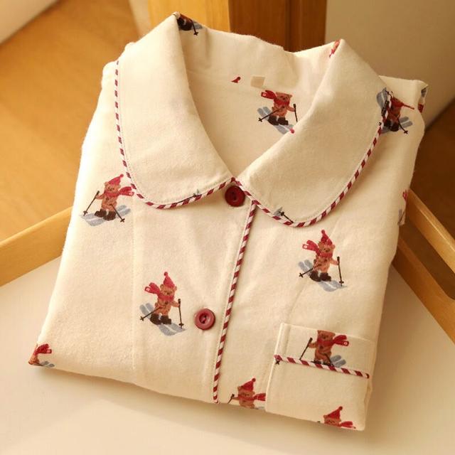 Seven七- 秋冬季睡衣女純棉磨毛卡通可愛印花女士居家服長袖套裝