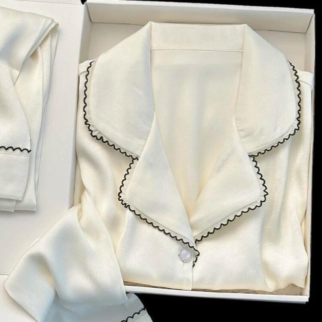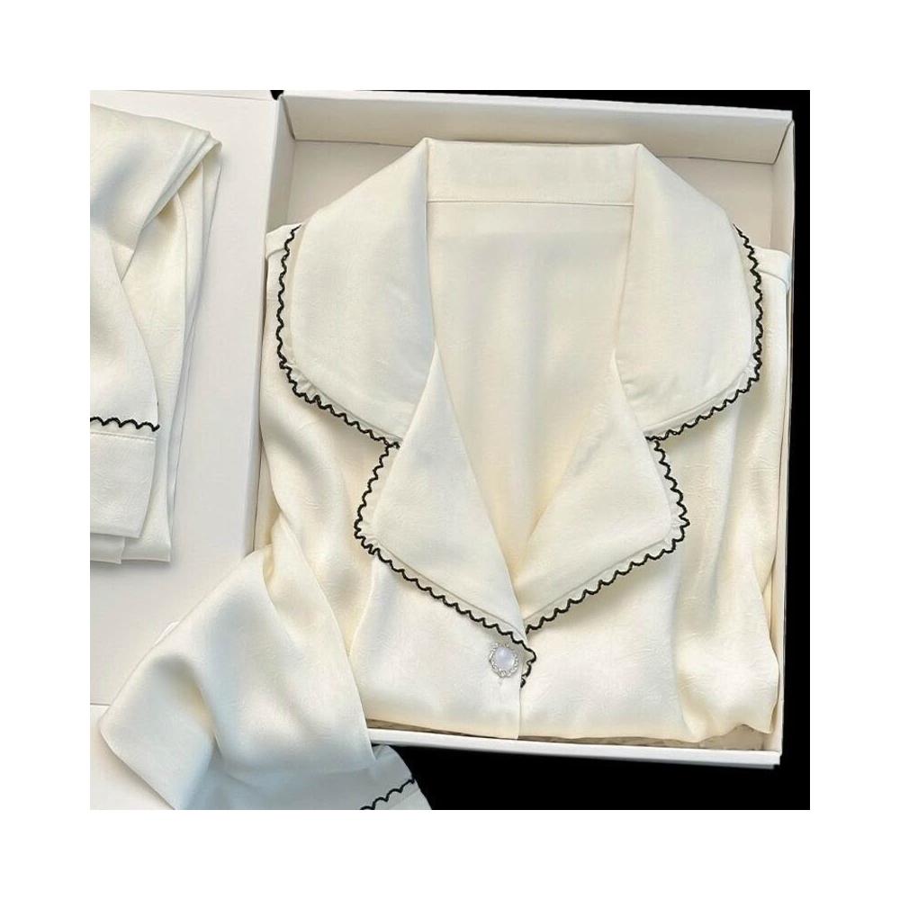 Seven七- 琺瑯冰花法式新款春簡約高級感輕奢印花冰絲睡衣絲緞家居服