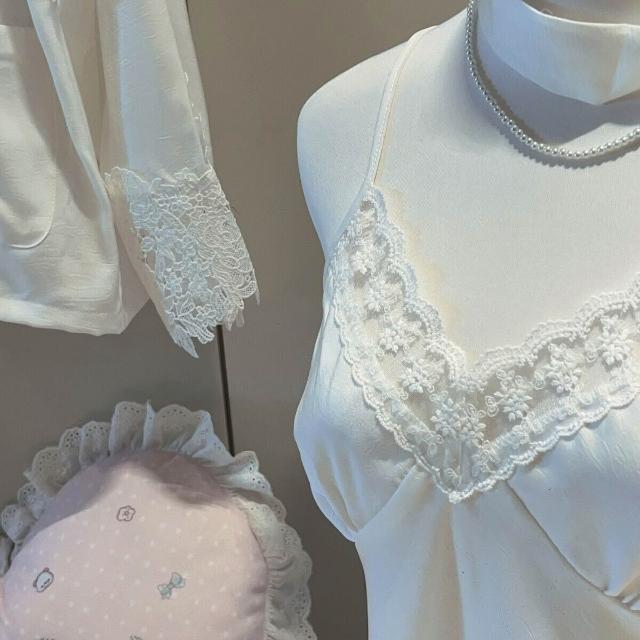Seven七- 四件套性感睡衣內衣緞面吊帶蕾絲睡衣女式家居服睡袍系帶浴袍套裝