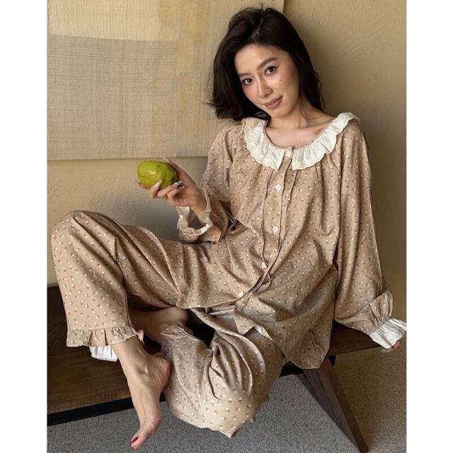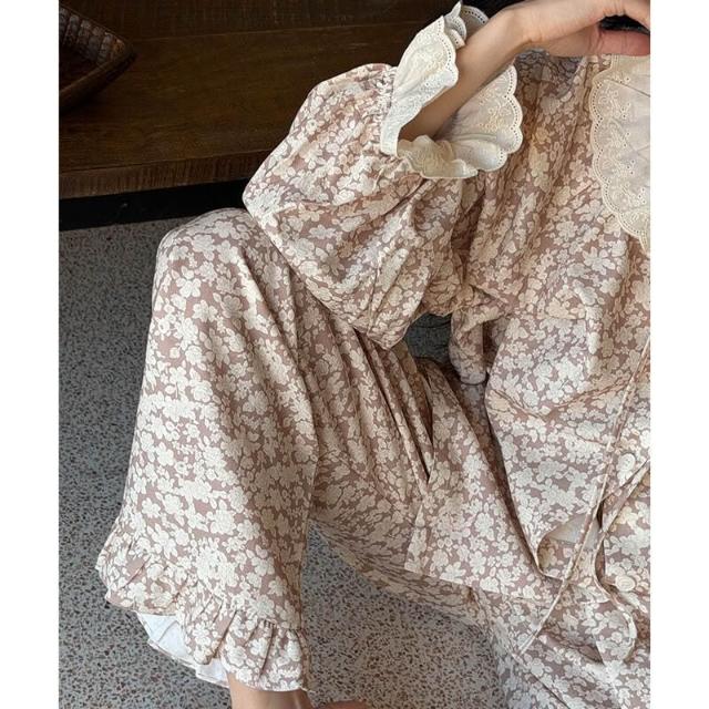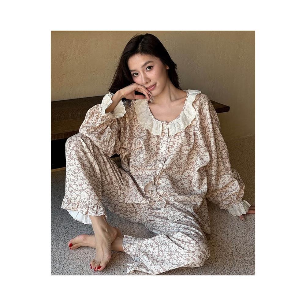 Seven七- 2026新款純棉長袖女士家居服可愛碎花少女風甜美花邊舒適睡衣套裝