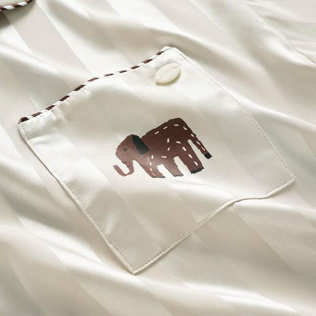 Seven七- 情侶睡衣女春夏新款卡通涼感冰絲條紋長袖男士輕奢家居服